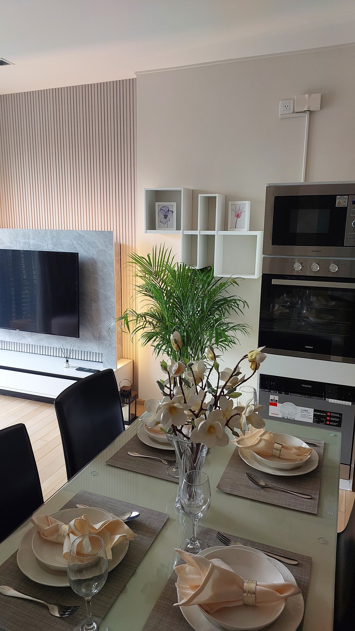 ครัวจัดเต็ม พร้อมเครื่องครัวใหม่ทุกชิ้น: เตาไฟฟ้า, ไมโครเวฟ, เตาอบ, เครื่องล้างจาน