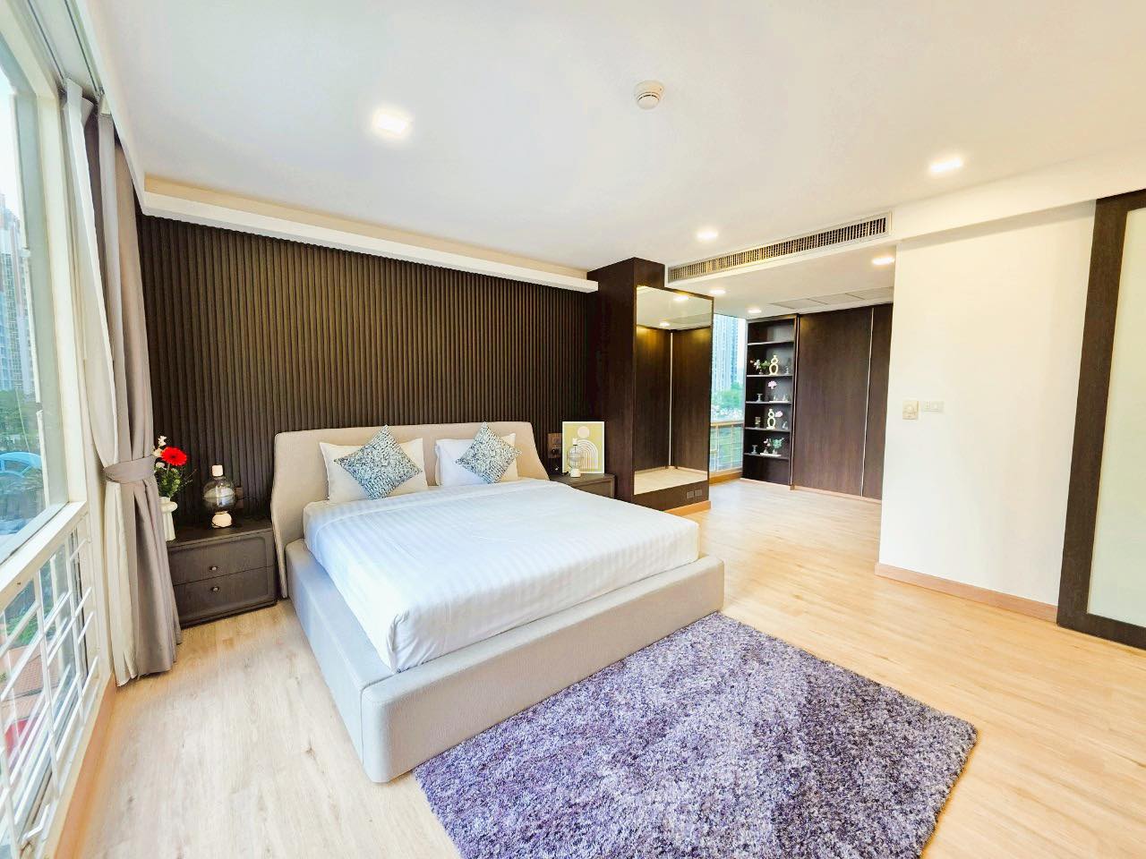 3) ห้องนอนใหญ่พร้อมห้องแต่งตัว ห้องน้ำในตัว (มีอ่างอาบน้ำและฝักบัวแยกกัน)