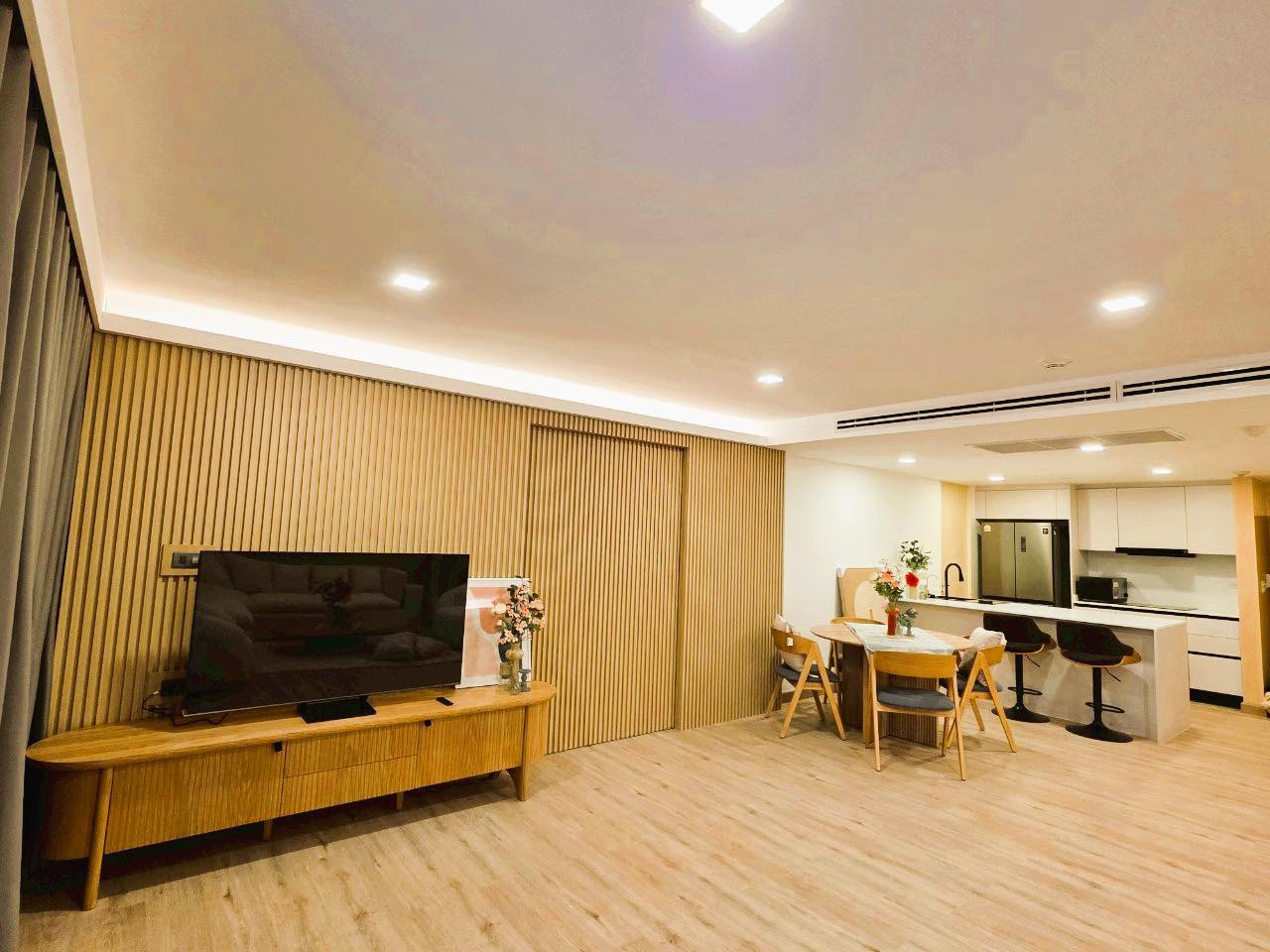 – สมาร์ททีวี 1 เครื่อง 55 นิ้ว ตั้งอยู่ในห้องนั่งเล่น
