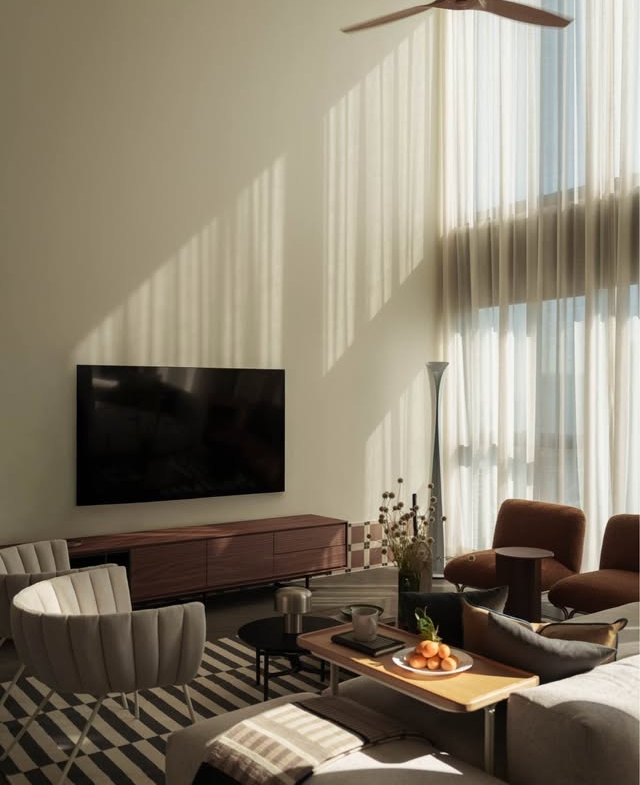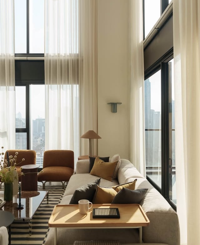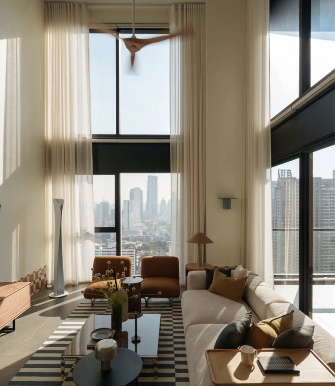 Spacious luxury living space with high ceiling perfect for modern city lifestyle in Silom.